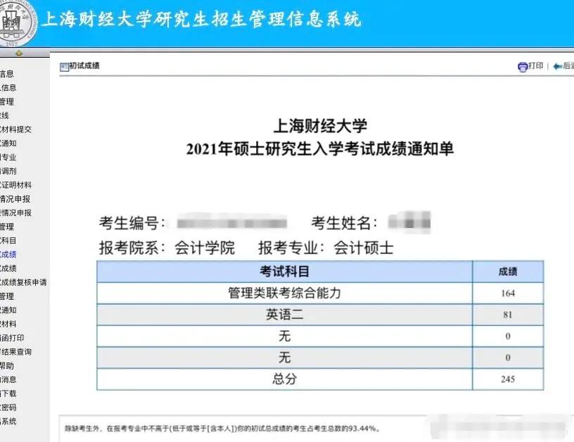 初試總分為245分,其中管理類聯(lián)考綜合為164分,英語二為81分,數(shù)1邏3排名73。