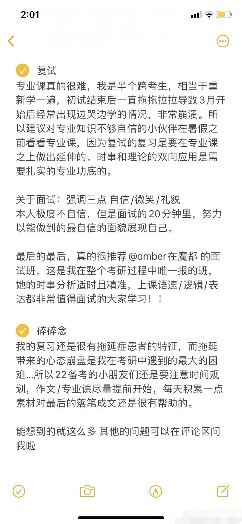 我的復習還是很有拖延癥患者的特征,而拖延帶來的心態(tài)崩盤是我在考研中遇到的最大的困難。所以22備考的小朋友們還是要注意時間規(guī)劃,作文/專業(yè)課盡量提前開始,每天積累一點素材對最后的落筆成文還是很有幫助的。
