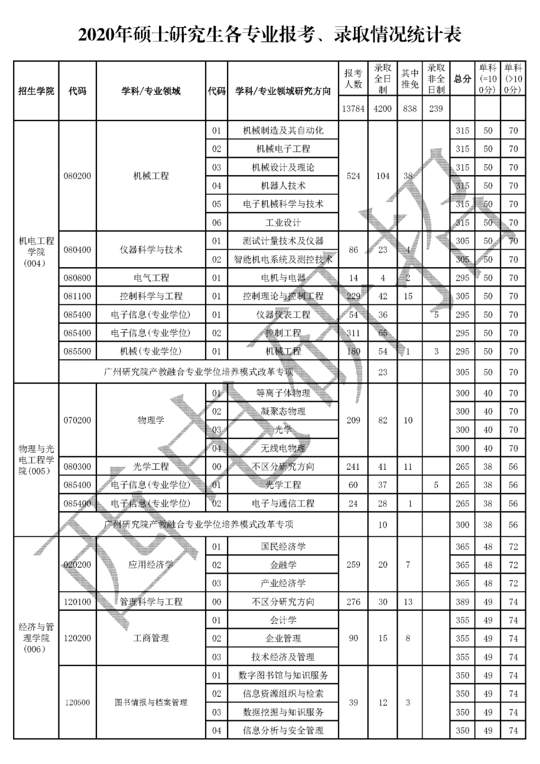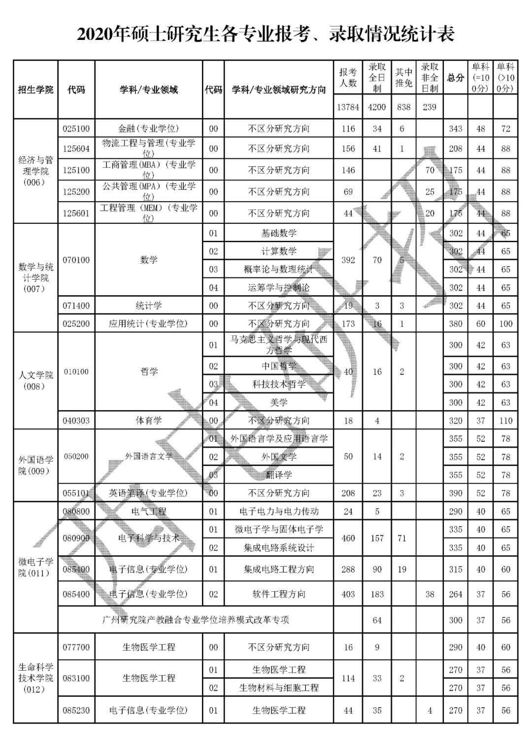 原文標題:2020年碩士研究生各專業報考、錄取情況統計表