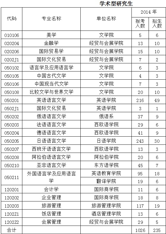 以上是為考生整理的“北京第二外國語學院2014年考研報錄比”相關內容,希望對大家有幫助!