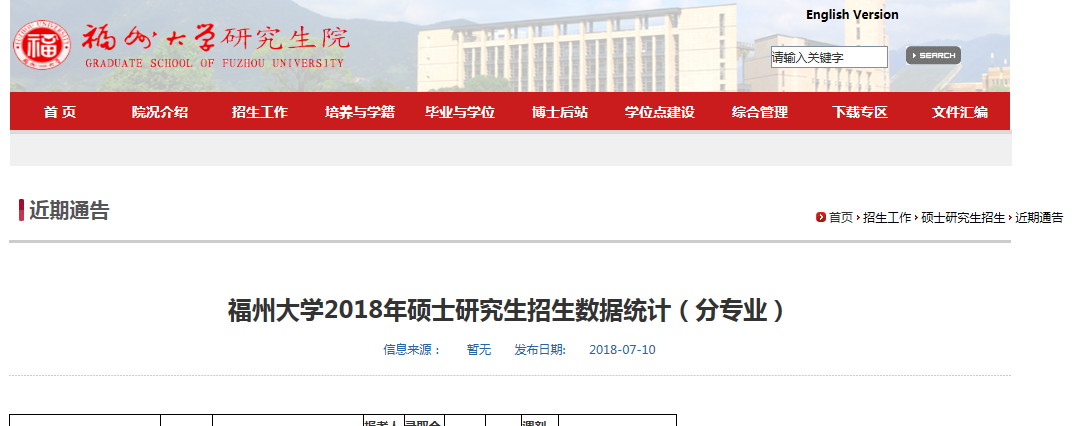 以上就是“福州大學(xué)2018年碩士研究生招生數(shù)據(jù)統(tǒng)計(jì)(分專業(yè))”的全部?jī)?nèi)容!祝你考研成功!