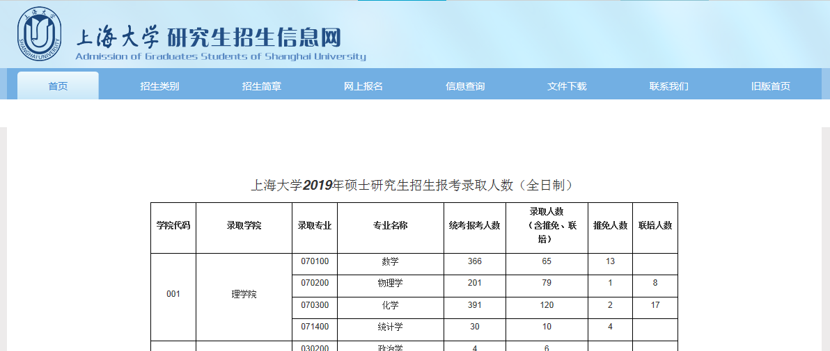 上海大學(xué)2019年碩士研究生招生報(bào)考錄取人數(shù)(全日制)