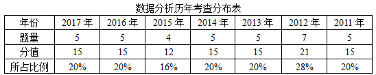 另外,小編仔細分析了2011年—2017年數據分析模塊的考查情況,相關數據整理如下表所示: