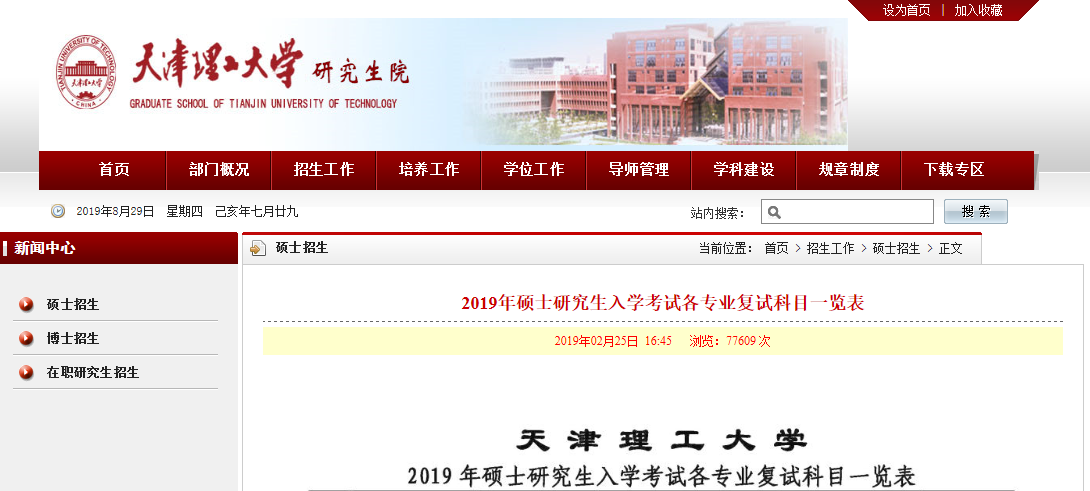 不知道怎么準備復試,也不知道怎么找復試資料,要復習哪些內容?為方便同學們查閱復試資料,小編為同學們整理了“2019年天津理工大學碩士研究生入學考試各專業復試科目一覽表”!