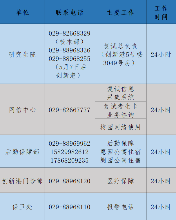 具體安排詳見各學院(部、中心)復試細則,聯系方式見下表。