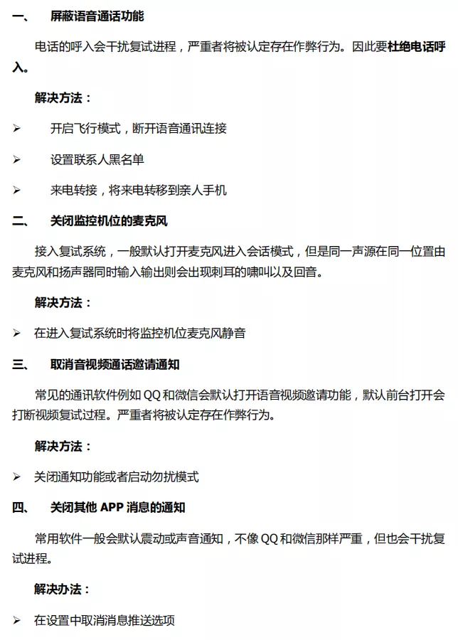 可視范圍內不能有任何復試相關資料,不得有其他人在場。