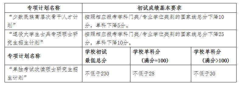 二、2020年中國礦業大學“少數民族高層次骨干人才計劃”、“退役大學生士兵計劃”、“單獨考試”等碩士招生考試考生進入復試的初試成績基本要求