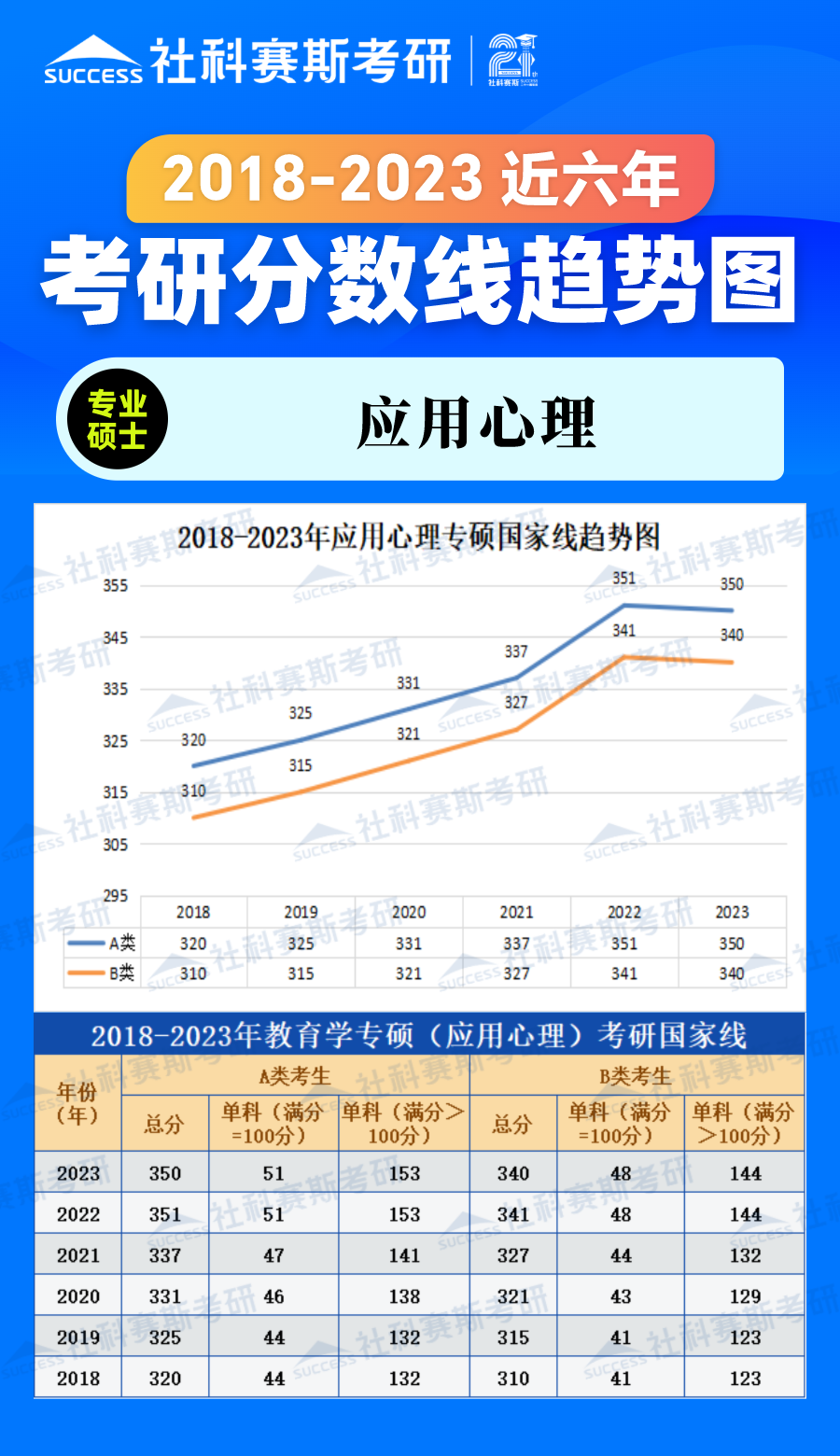 2023考研分?jǐn)?shù)線:2018-2023年應(yīng)用心理專碩近六年考研分?jǐn)?shù)線趨勢圖