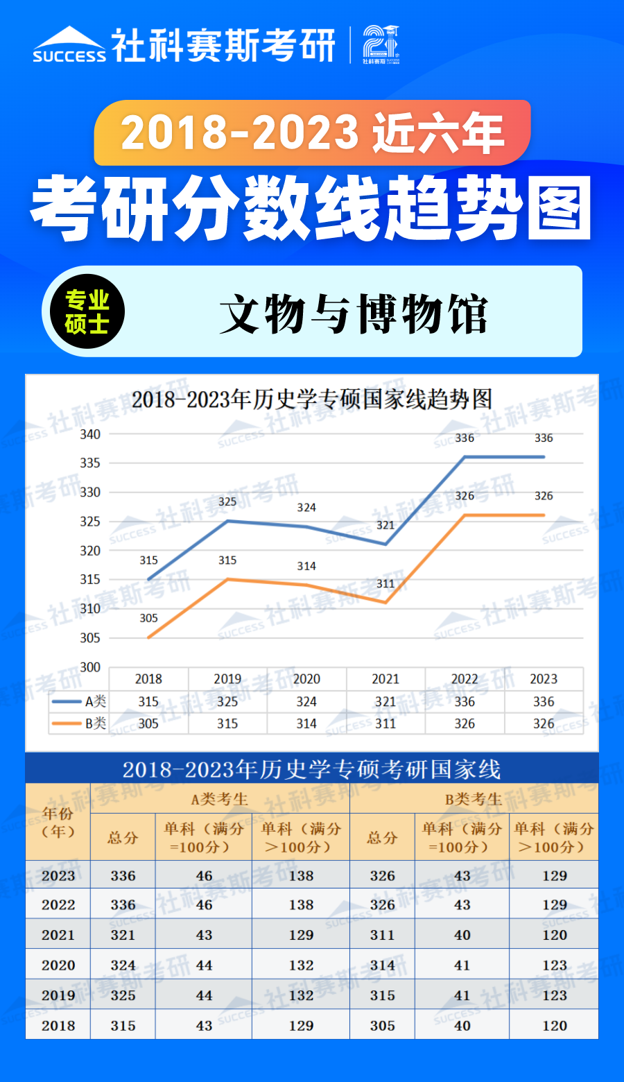2023考研分數線:2018-2023年歷史學專碩近六年考研分數線趨勢圖