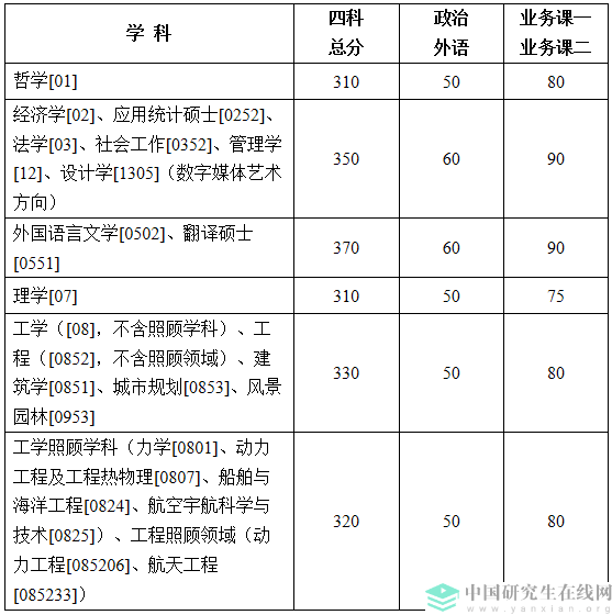 (1)學校復試基本線是我校的最低復試分數要求,各學科應在學校復試基本線的基礎上,根據生源的實際情況確定本學科的復試資格線。