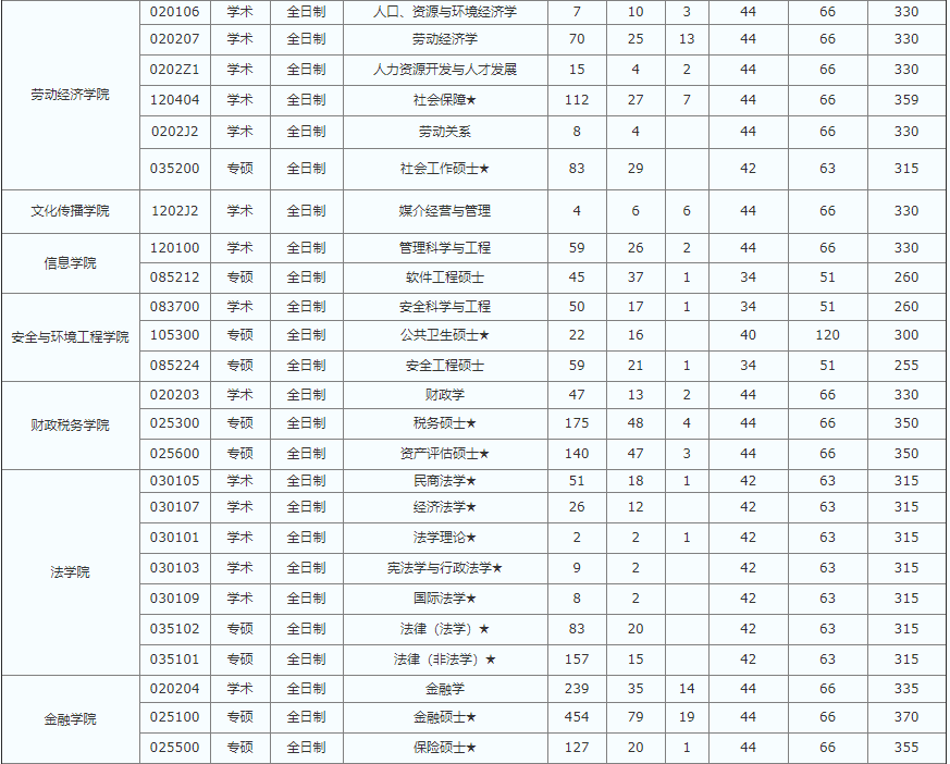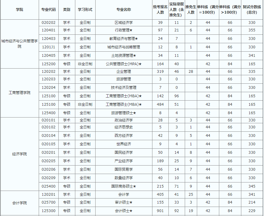 首都經濟貿易大學2018年碩士研究生實際錄取人數與復試分數對照表