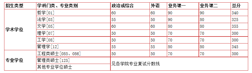附:各學院學科專業復試分數線