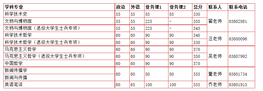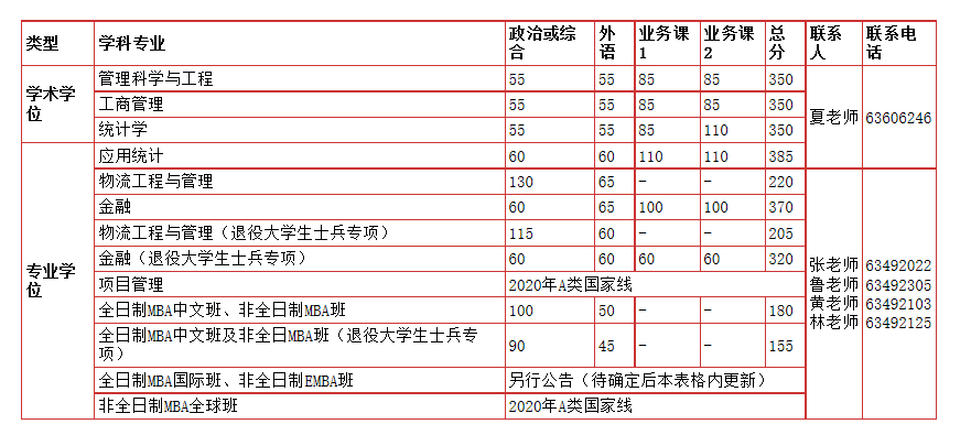 中國科大2020年碩士研究生招生考試復試分數線