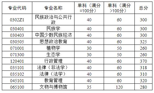 一、統(tǒng)、聯(lián)考計劃各專業(yè)進入復(fù)試的初試成績要求