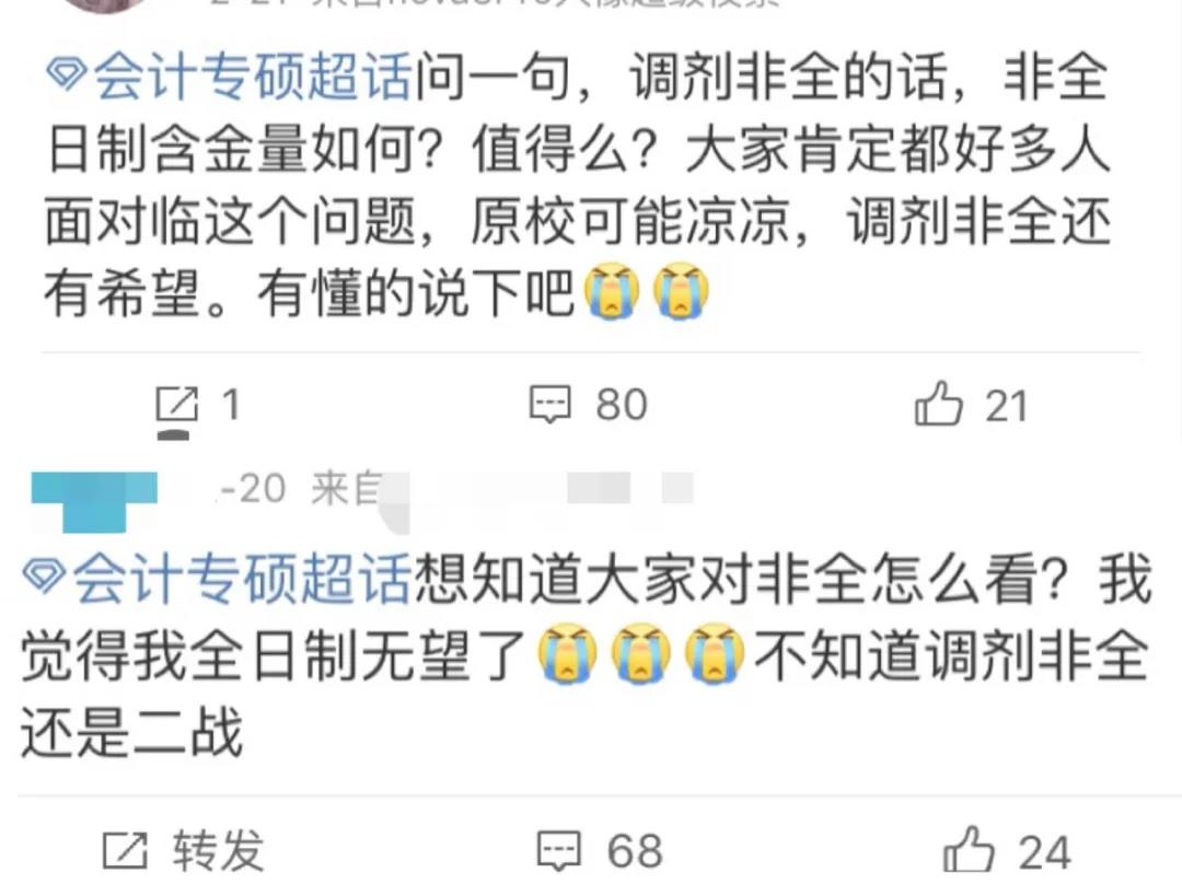 今年分數線一出,很多考生都在糾結要不要調劑到非全,想著只要有學上就好。