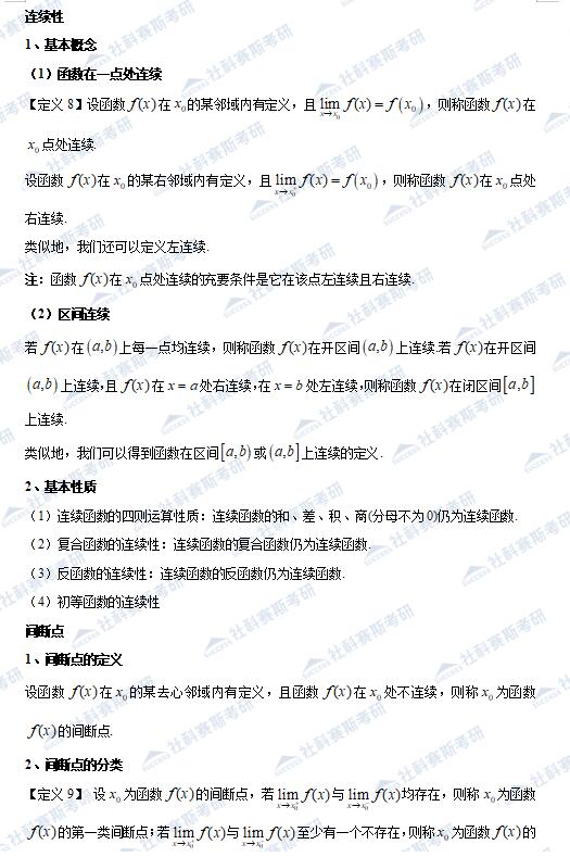 2021考研高等數學:基礎階考點(七)連續與間斷