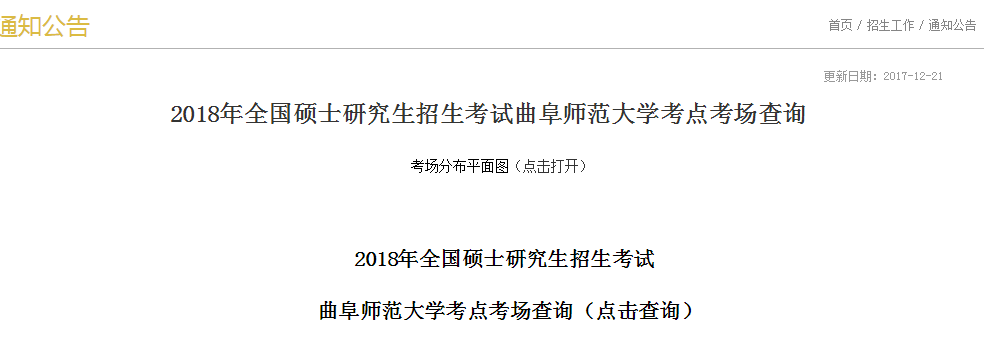 【考研考場安排】曲阜師范大學2018考研考場安排