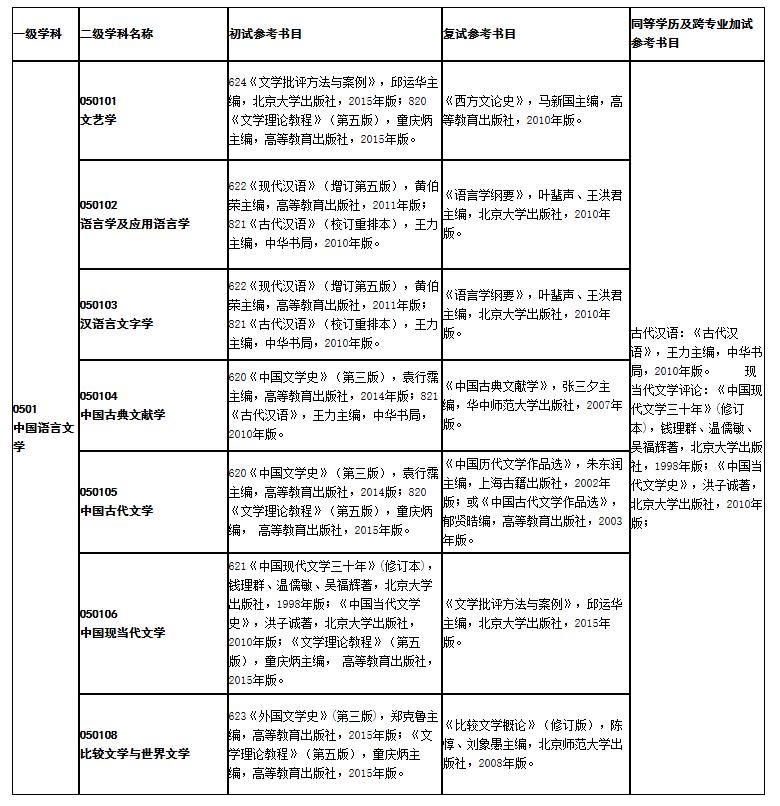 以上就是“2021考研參考書目:陜西理工大學文學院2021年碩士研究生考試初、復試參考書目(學術型)”的全部內容!祝您考研成功!
