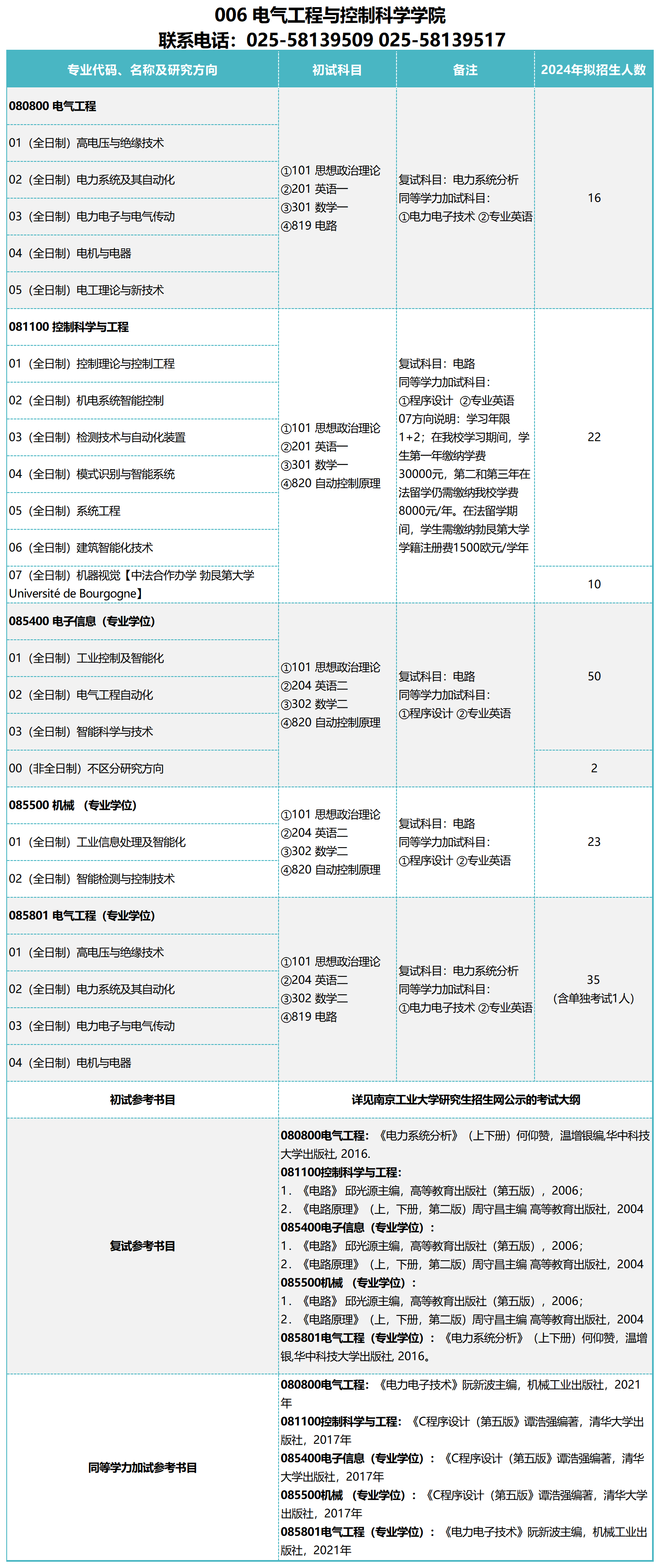 以上就是“2024考研參考書目:南京工業大學電氣工程與控制科學學院2024年碩士研究生招生參考書目”的內容,更多考研信息,請持續關注本網站。