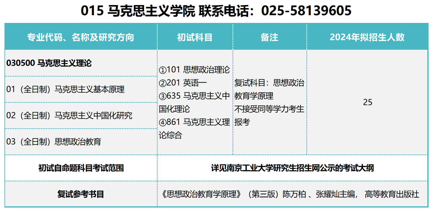 以上就是“2024考研參考書目:南京工業(yè)大學馬克思主義學院2024年碩士研究生招生參考書目”的內(nèi)容,更多考研信息,請持續(xù)關(guān)注本網(wǎng)站。