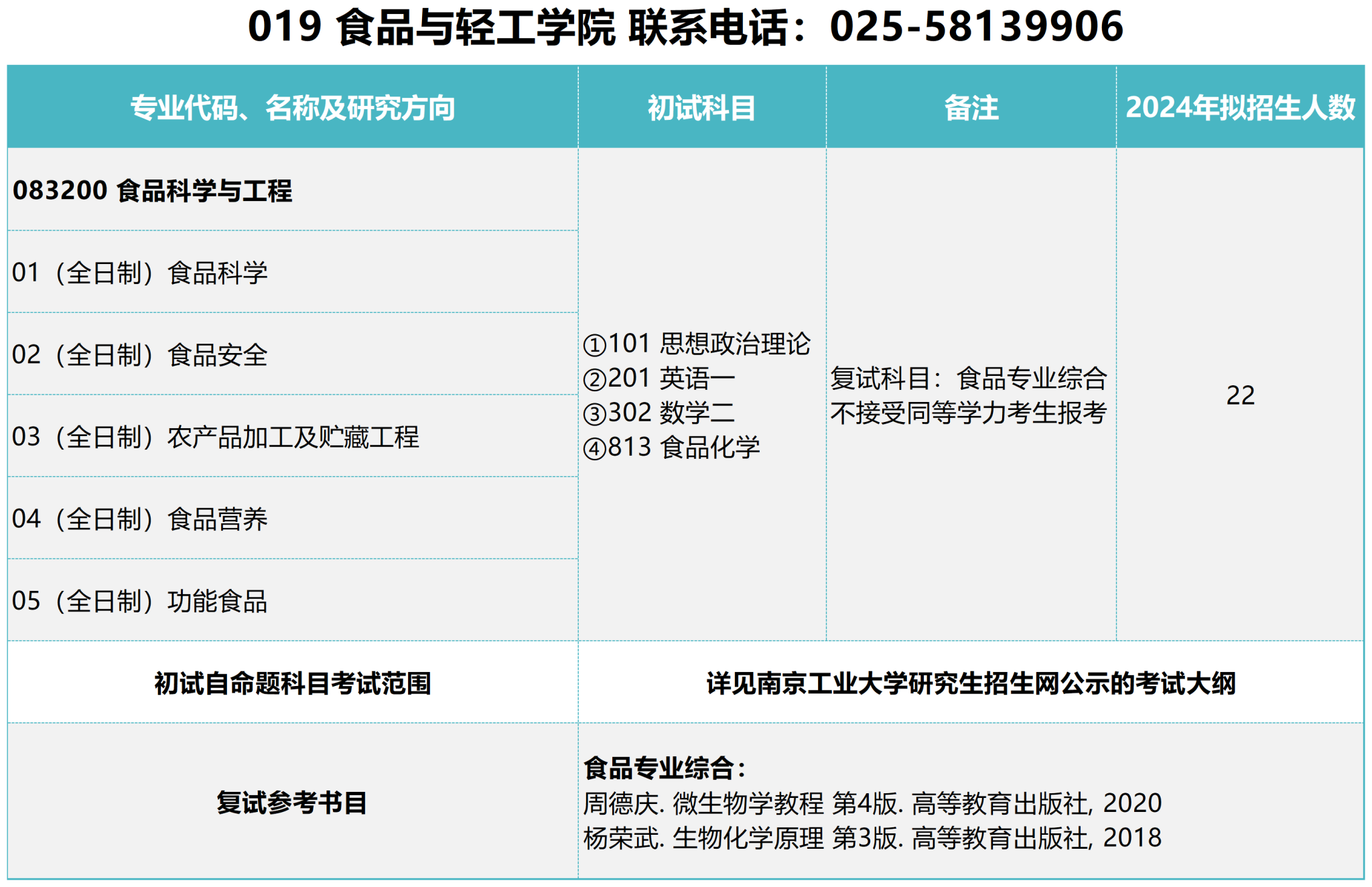 以上就是“2024考研參考書目:南京工業大學食品與輕工學院2024年碩士研究生招生參考書目”的內容,更多考研信息,請持續關注本網站。