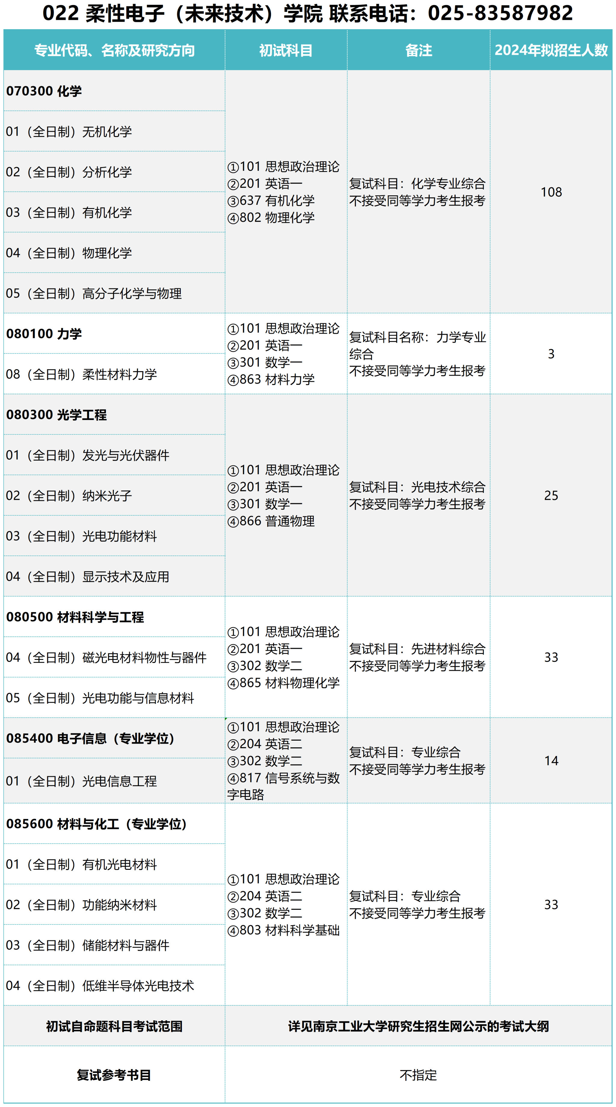 以上就是“2024考研參考書目:南京工業(yè)大學柔性電子(未來技術)學院2024年碩士研究生招生參考書目”的內(nèi)容,更多考研信息,請持續(xù)關注本網(wǎng)站。