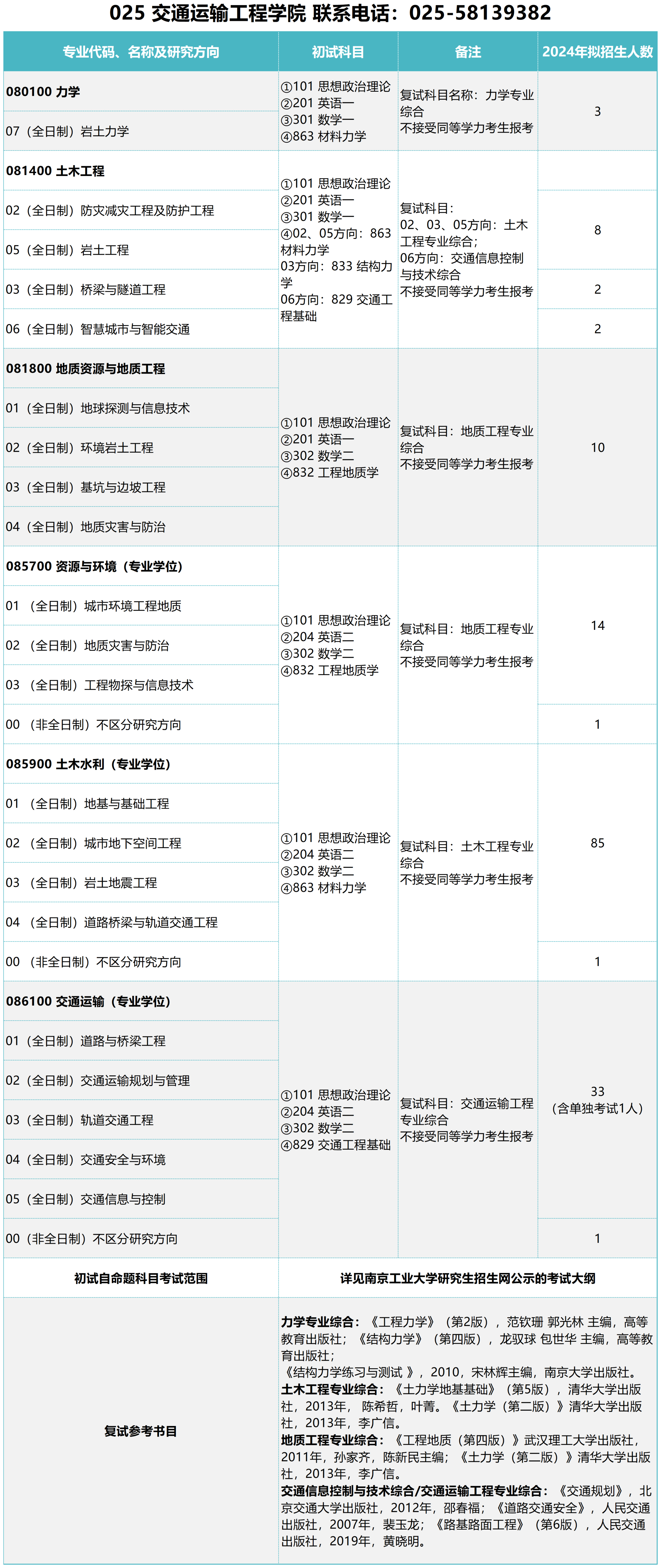 以上就是“2024考研參考書目:南京工業(yè)大學(xué)交通運(yùn)輸工程學(xué)院2024年碩士研究生招生參考書目”的內(nèi)容,更多考研信息,請持續(xù)關(guān)注本網(wǎng)站。