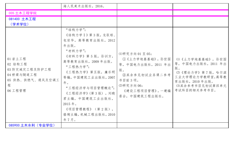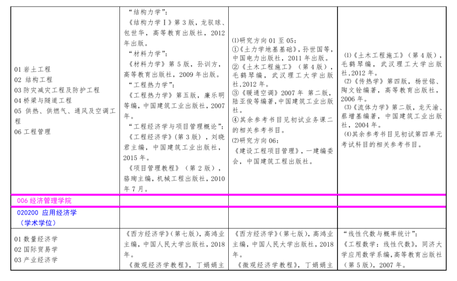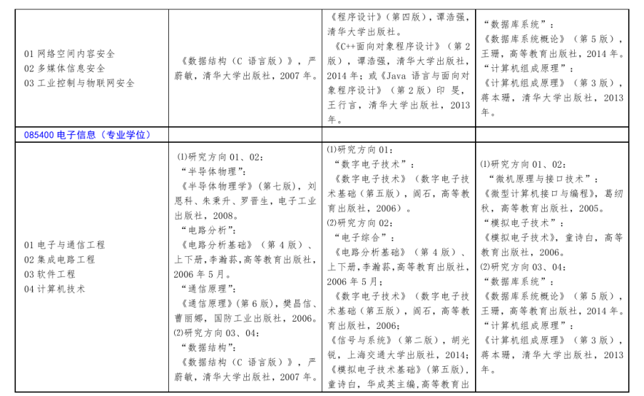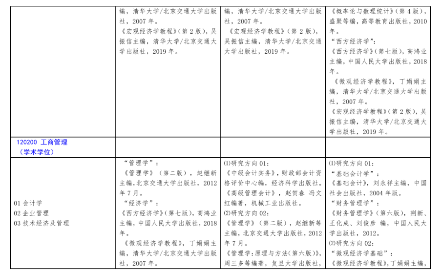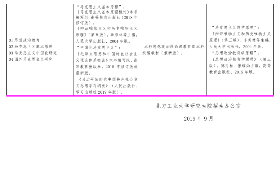 北方工業大學2020年招收攻讀碩士學位研究生考試自命題科目參考書目