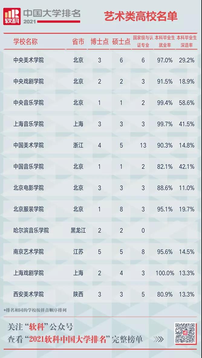 2021軟科中國藝術類高校名單(有博士學位授權點)