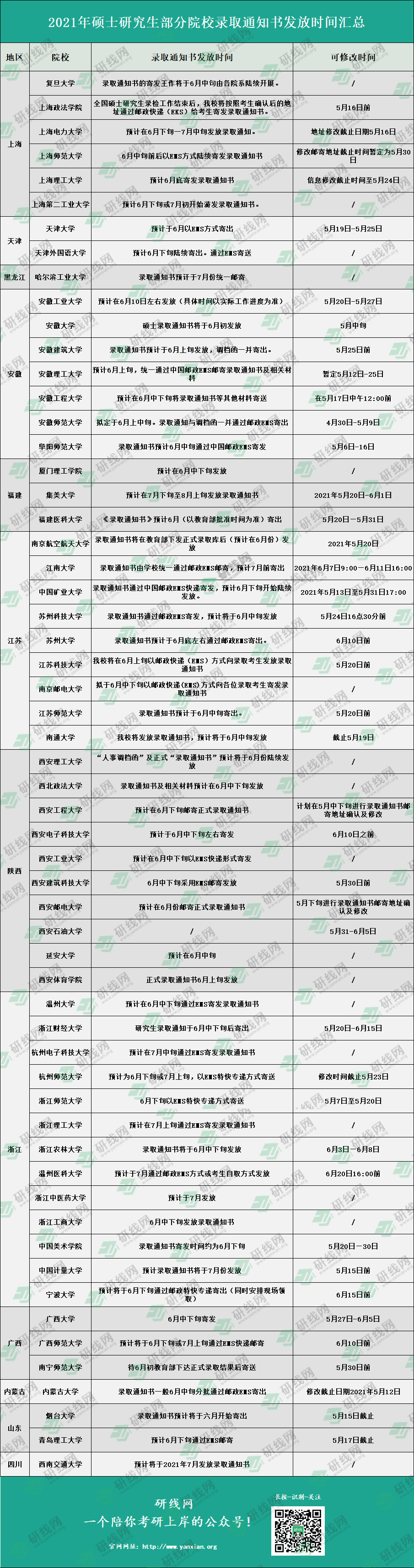 最近就有很多小伙伴咨詢,我的研究生錄取通知書什么時候到位啊,怕不是考了個假的研究生吧。別慌,下面小編整理了部分院校研究生錄取通知書的大體郵寄時間、郵寄信息修改時間范圍,大家快去認領自己的學校吧~