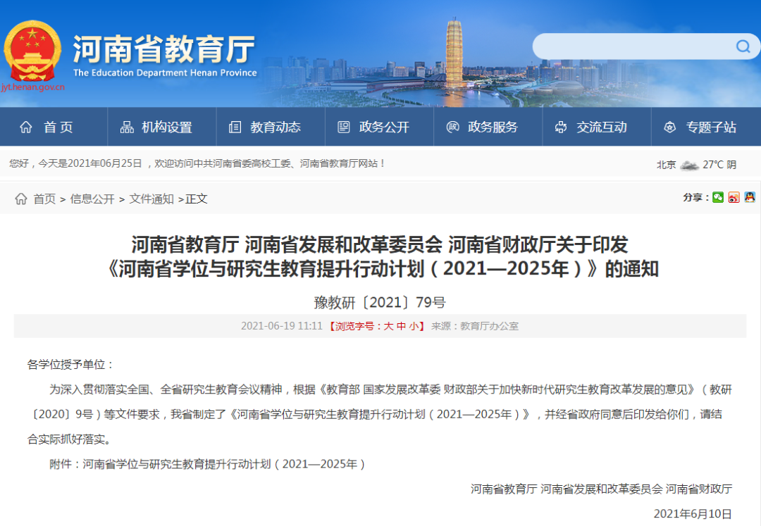 《河南省學(xué)位與研究生教育提升行動計劃》