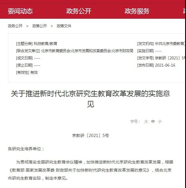 《關(guān)于推進新時代北京研究生教育改革發(fā)展的實施意見》