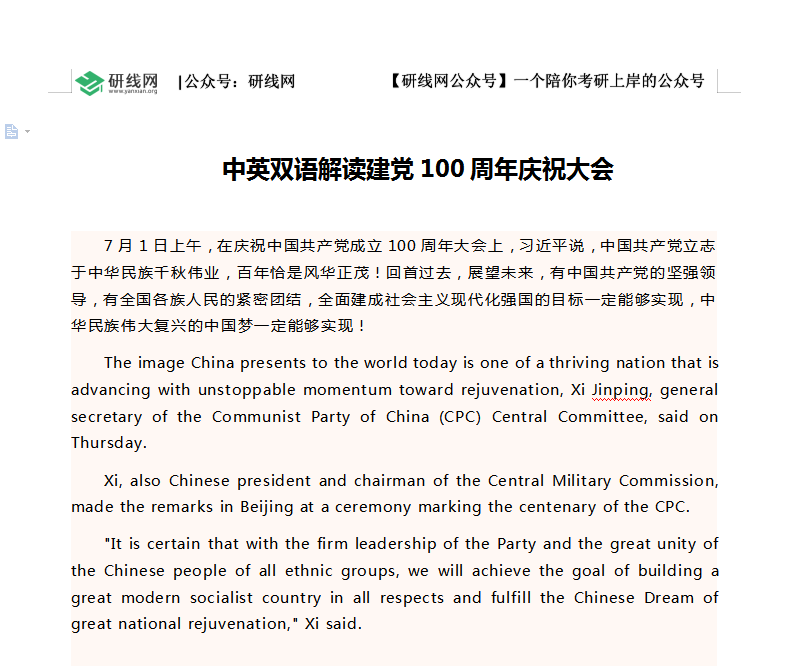 包含考研政治和英語超多知識點!中國共產黨100周年內容盤點來啦