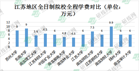 江蘇地區會計碩士全日制的全程學費主要集中在5-8萬之間,非全日制的全程學費在7-9萬之間的院校居多,高性價比院校推薦: