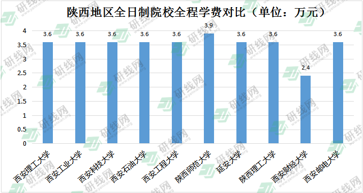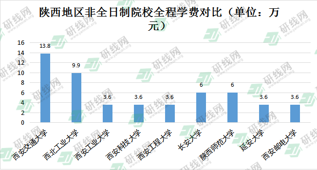 陜西地區全日制院校全程學費相差不大,最高3.9萬,最低2.4萬。非全日制學費差距較大,高性價比院校推薦: