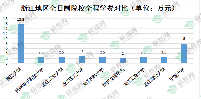 浙江地區會計碩士全日制的全程學費主要集中在2-3萬之間,最高和最低全程學費相差13.8萬,相差較大,高性價比院校推薦: