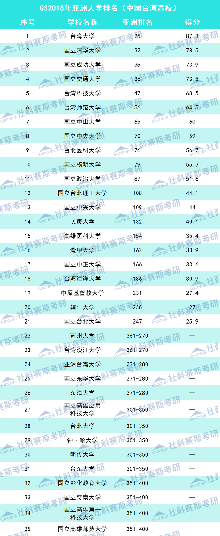 QS發布了2018亞洲大學排行榜(QS University Rankings Asia 2018),來自亞洲不同國家和地區的400+所高校上榜。中國140+所大學進入亞洲400強,數量亞洲第一。