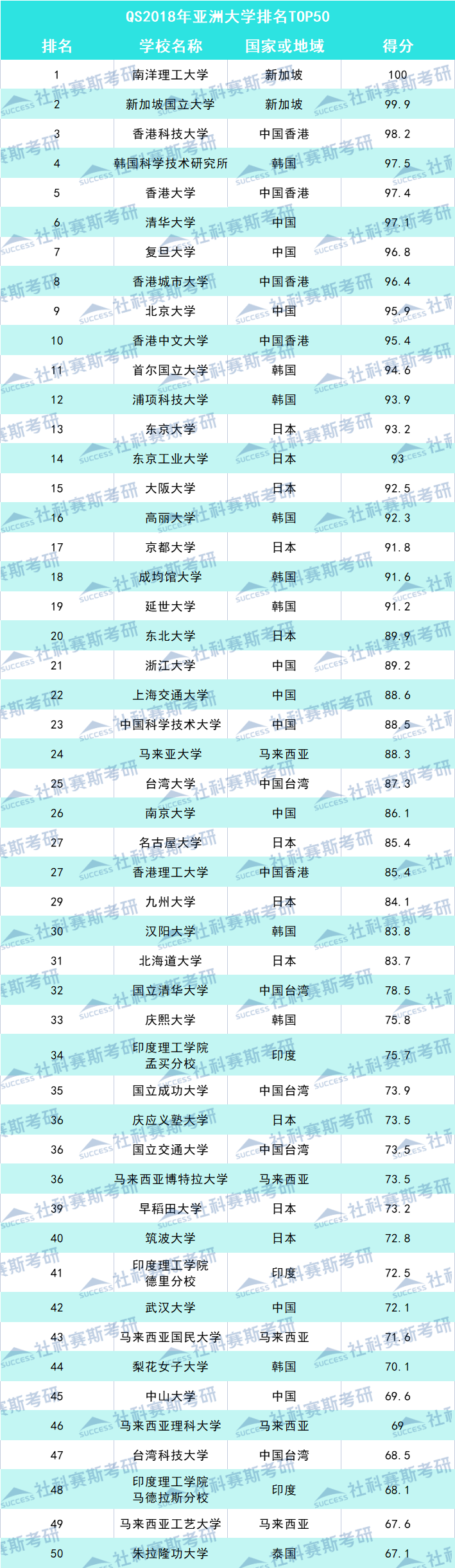 QS發布的2018亞洲大學排名中,中國、日本、韓國、新加坡高校表現強勢,其中更是有三所中國高校進入亞洲TOP10。