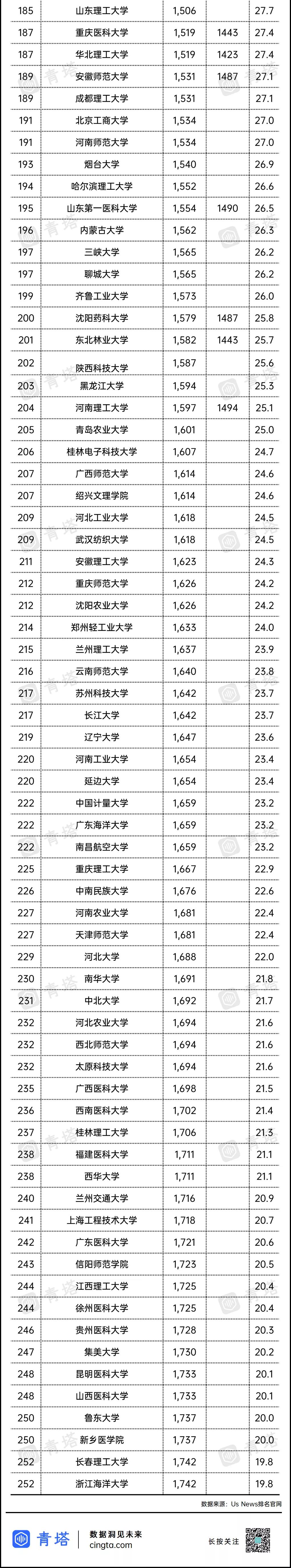 中國共有289所高校入圍US News2022世界大學排行榜。其中內地高校253所,香港高校7所,澳門高校2所,臺灣高校27所。相較去年,中國高校整體排名進步較大。