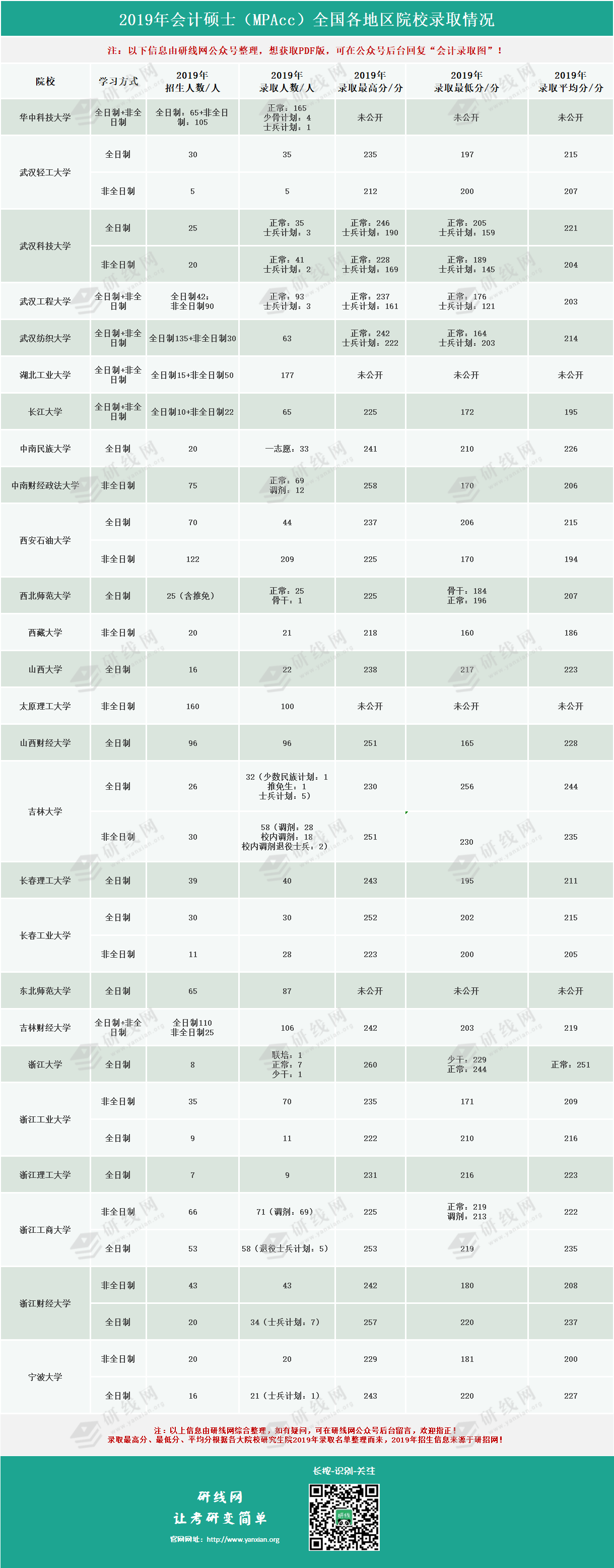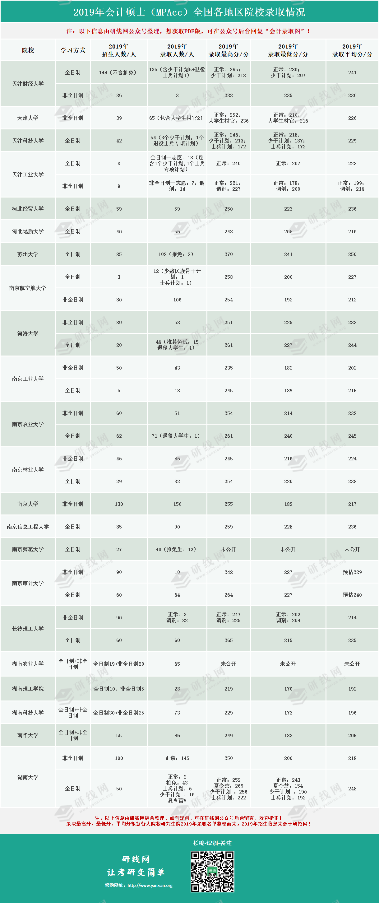 至今,社科賽斯考研網小編收集了100多所院校會計專碩的錄取名單。通過錄取名單計算平均分、實際錄取人數,并篩選出最高分、最低分。