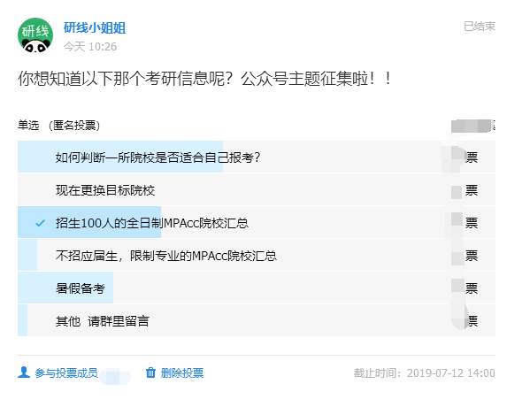 經(jīng)過激烈的群投票,征集大家意見選出了本次主題“如何判斷一所院校是否適合自己報考?”,你還想要什么知道任何考研資訊,都可以給小姐姐在群里留言哦!
