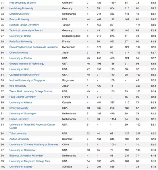 附榜單前100名高校名單: