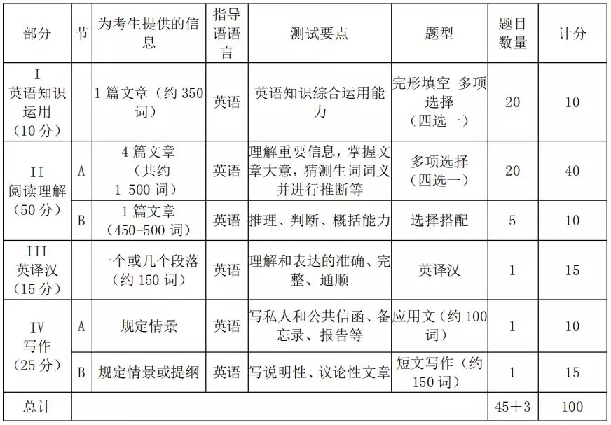 (2)英語二題型及分值