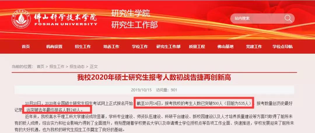 佛山科學技術學院截止到10月14日時,報考人數就已經突破了500人,遠超去年的報名人數248人。