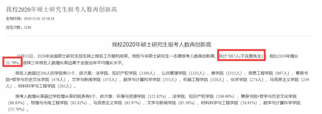 2020年湘潭大學年碩士研究生一志愿報考人數再創新高,共計7887人(不含推免生),相比2019年增長51.79%。