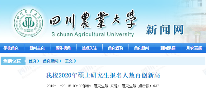 以上就是“2020考研報(bào)名人數(shù) | 四川農(nóng)業(yè)大學(xué)2020碩士研究生報(bào)考人數(shù)比去年增長了12.48%”的全部內(nèi)容!2020考研總?cè)藬?shù)是多少還不確定,但有一點(diǎn)可以肯定,考研人數(shù)必定將逐年遞增。希望大家抓住機(jī)會(huì),早日考研成功。