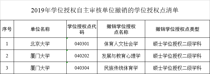 2019年學位授權自主審核高校撤銷和增列的學位授權點名單已經(jīng)國務院學位委員會審議批準,現(xiàn)印發(fā)給你們。