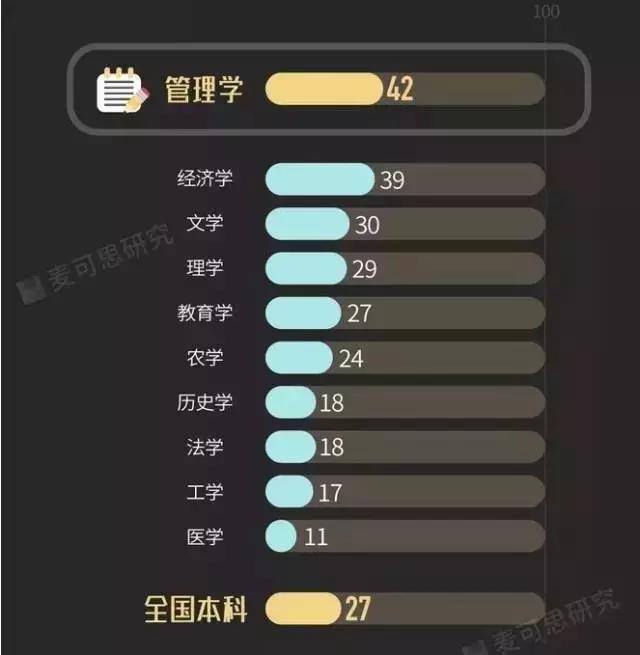 很巧的一點是,管理學考研比例最低,而跨考比例最高,這是否意味著管理學專業不太“受人待見”?