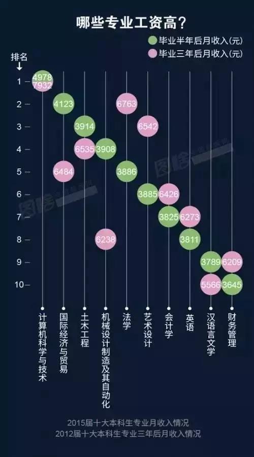 可以看出,計算機科學與技術專業收入非常可觀。此外,國際經濟與貿易、土木工程,也是畢業半年后收入較高的專業。這些專業所在學科考研比例都比較低。