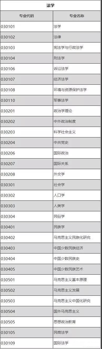 包含5個一級學科,31個二級學科,其中法學10個、政治學7個、社會學4個、民族學5個、馬克思主義理論5個。法學門類中不考數學的專業有:
